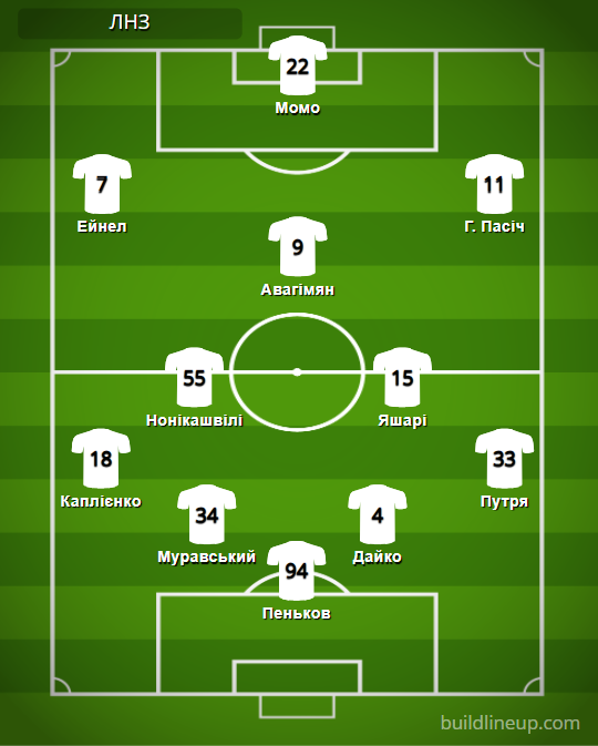ЛНЗ: Пеньков – Каплиенко (Олейник, 60), Муравский, Дайко, Путря – Ноникашвили, Авагимян (Молло, 60), Яшари – Эйнел, Момо (Халайла, 46), Г. Пасич.