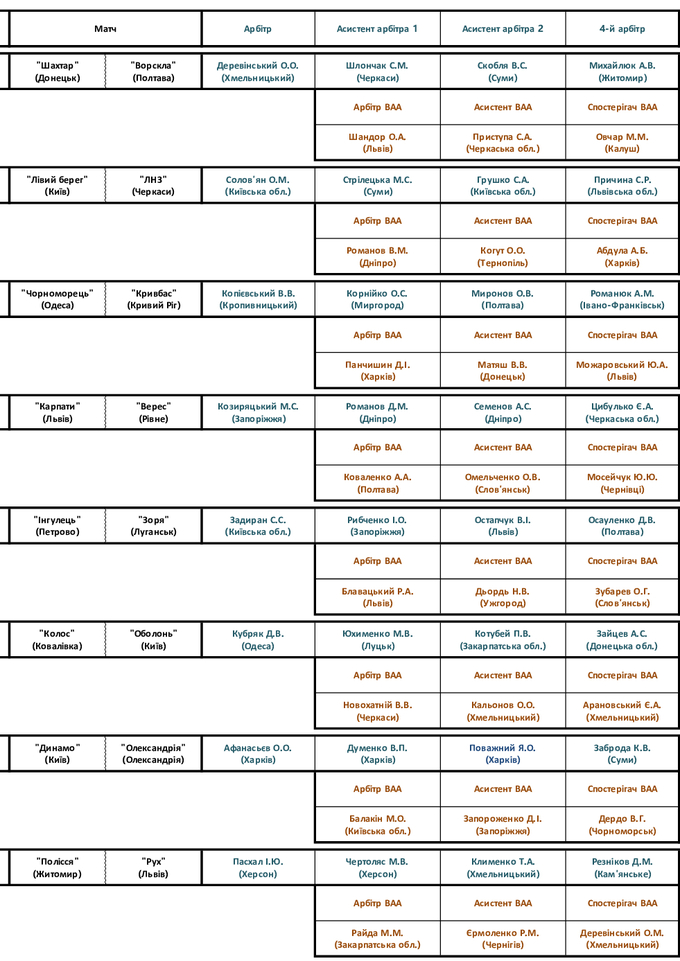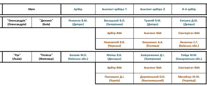 Комитеты Украинской ассоциации футбола назначили официальных лиц на очередной тур.