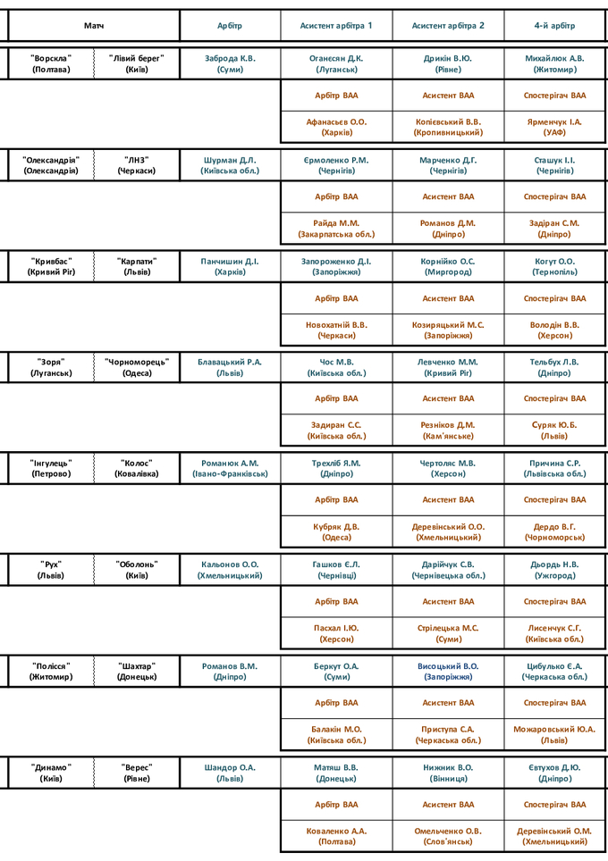 Комитеты Украинской ассоциации футбола назначили официальных лиц на очередной тур.