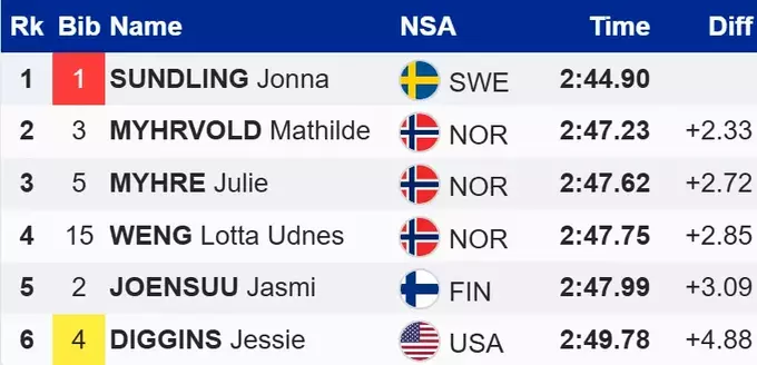 Уверенное выступление в Давосе продемонстрировала шведка Йонна Сундлинг. Лыжница победила в предыдущей командной гонке, теперь поднялась на первую ступеньку в спринте.