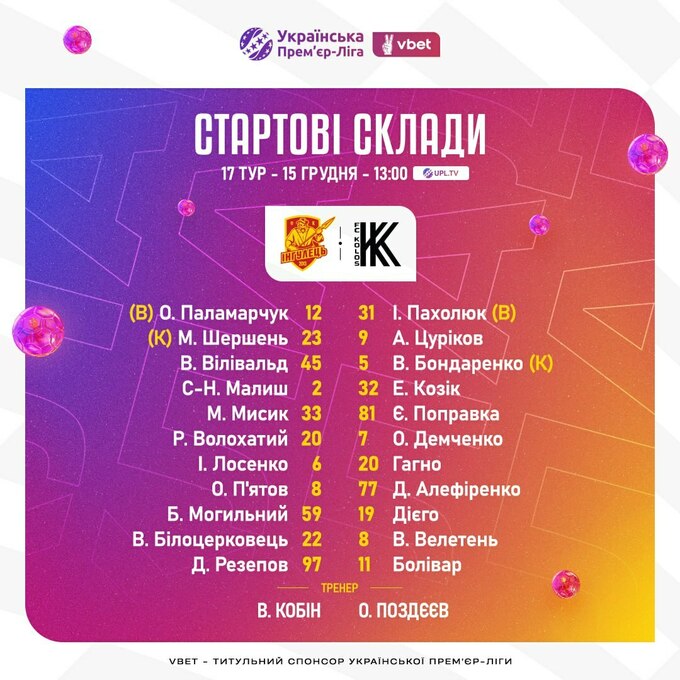 В воскресенье, 15 декабря, в 13:00 состоится матч 17-го тура Украинской Премьер-лиги.