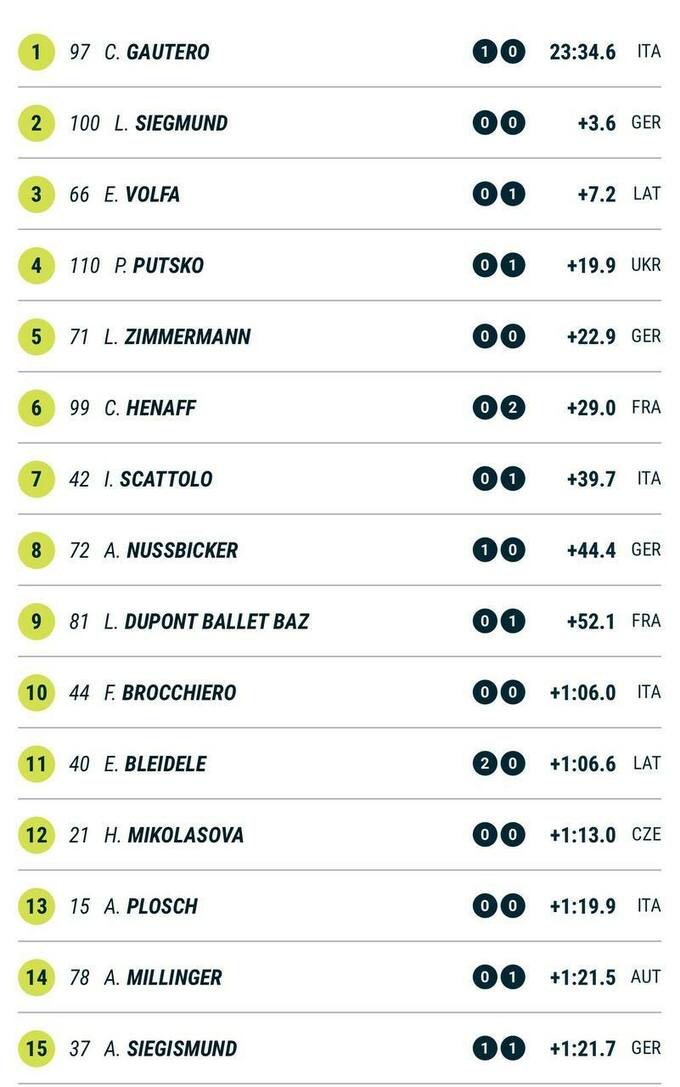 - 1. Карлотта Гаутеро (Италия) (1+0) 23:34.6
