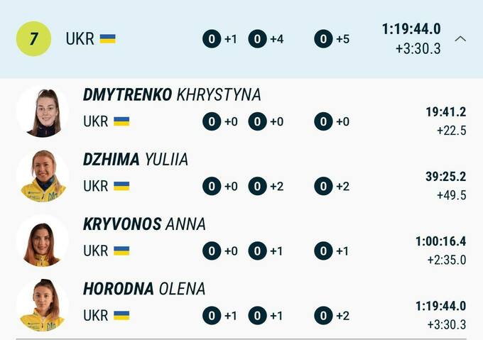 Представительницы сборной Украины неплохо отработали на стрельбище, однако по скорости уступили оппоненткам. Как результат, национальная команда заняла седьмую строчку.