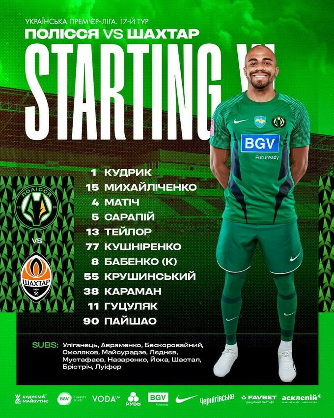 Стали известны стартовые составы на матч Полесье – Шахтер