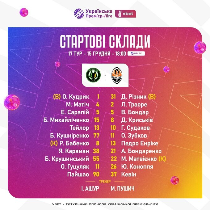 В воскресенье, 15 декабря, в 18:00 состоится матч 17-го тура Украинской Премьер-лиги.