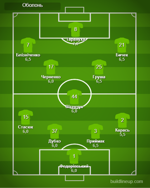 «Оболонь»: Федоривский – Стасюк, Дубко, Приймак, Карась (Грысьо, 46) – Витенчук, Груша (Слободян, 89), Черненко (Курко, 75) – Близниченко, Бычек (Теслюк, 75), Тарануха (Лукьянчук, 94)