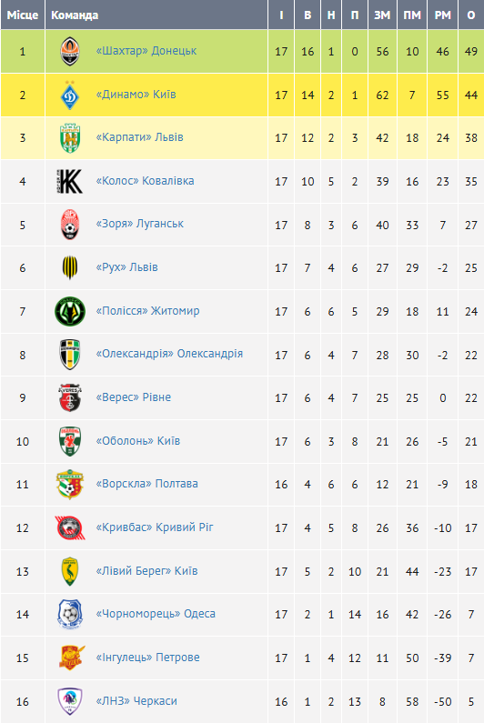 Шахтер U-19 с 49 очками идет на первой позиции, у Динамо U-19 с 44 баллами – второе место