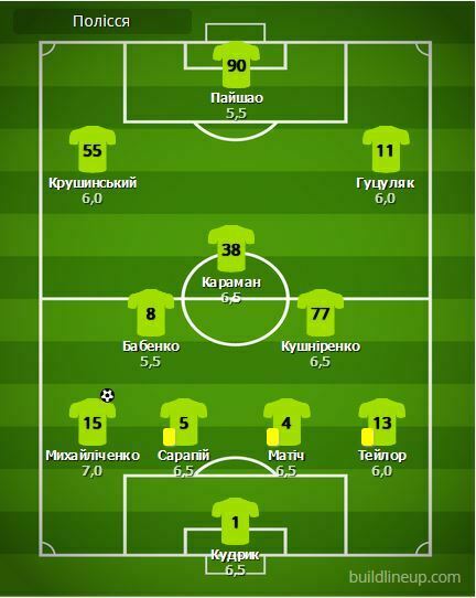 Заміни «Полісся»: Смоляков – 5,5; Назаренко – 5,5; Брістріч