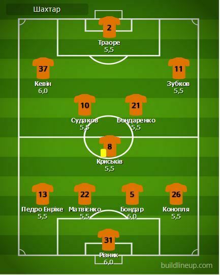 «Шахтер»: Ризнык, Педро Энрике, Бондарь, Матвиенко, Конопля, Крыськив (Марлон, 80), Судаков, Зубков (Педриньо, 52), Бондаренко, Кевин, Траоре (Сикан, 80)