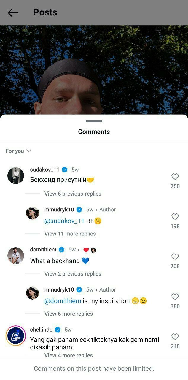 Мудрик отключил комментарии в своих социальных сетях