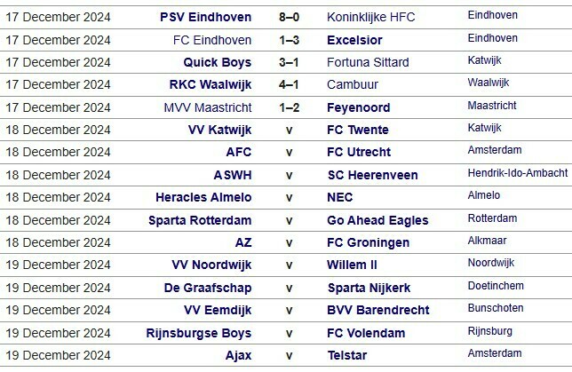 Вечером 17 декабря состоялись матчи 1/16 финала Кубка Нидерландов.