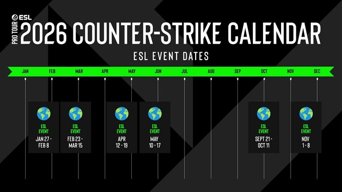 ФОТО. ESL объявили календарь турниров по CS2 на 2026 год