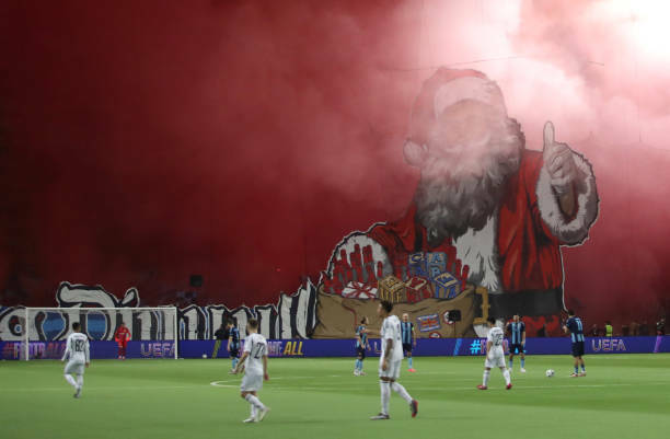 Фаны шведского «Юргордена» в последнем домашнем матче 2024 года против Легии сделали большое рождественско-новогоднее поздравление с Дедом Морозом. В мешке с подарками есть заглавные буквы, которые можно сложить в выражение «УЕФА Мафия».