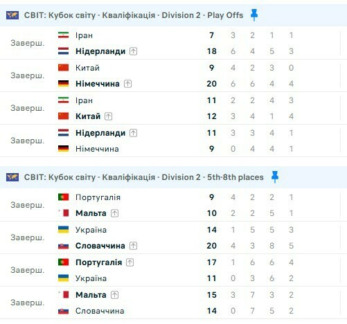 - Украина – Словакия – 14:20 (1:4, 5:3, 5:8, 3:5)