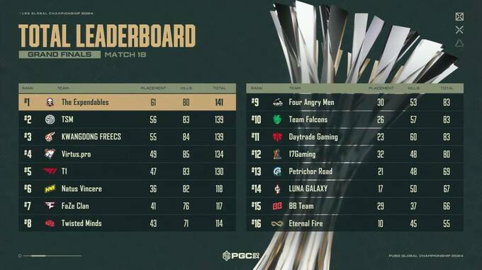 The Expendables победители PUBG Global Championship 2024. NAVI в топ-6
