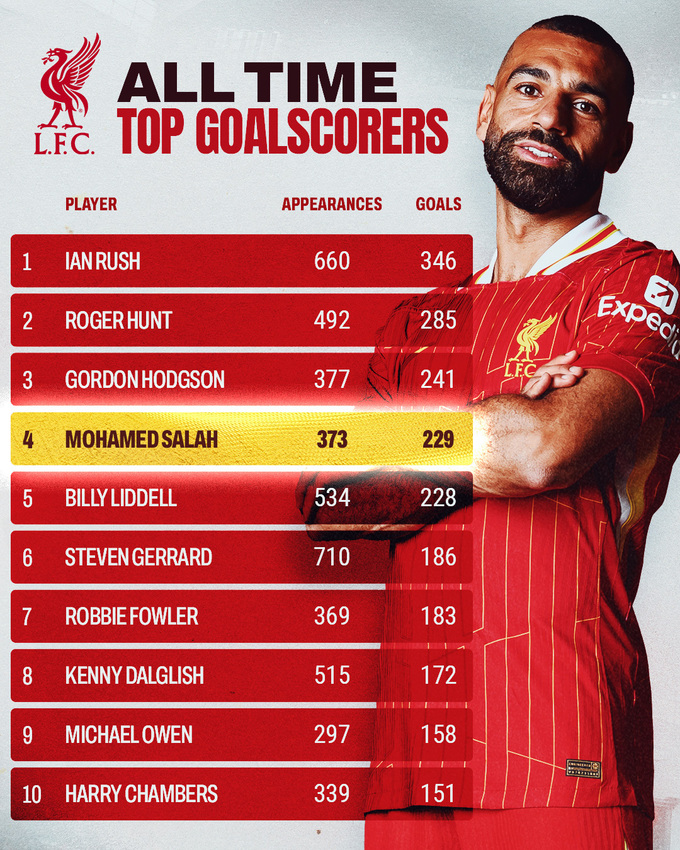 В этой встрече лидер «мерсисайдцев» Мохамед Салах оформил дубль и отметился двумя результативными передачами. Египетский футболист забил 228-й и 229-й гол в футболке «Ливерпуля» и обогнал Билли Лидделла в списке лучших бомбардиров за всю историю клуба. Если Салах забьет 12 мячей, то сможет сравняться с Гордоном Ходжсоном и разделить с ним третье место.