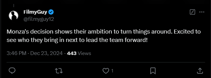 FilmyGuy: «Решение «Монцы» показывает их амбиции изменить ситуацию. Будет интересно увидеть, кого они пригласят, чтобы вести команду вперёд!».