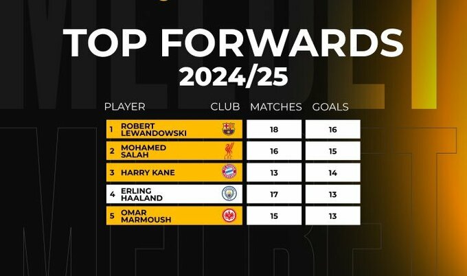 Золотая бутса 2024/25. Положение на 25 декабря 2024 года