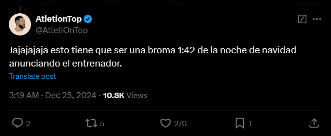 AtletionTop: «Хахаха, это что, шутка? 1:42 ночи в Рождество, а они объявляют тренера».