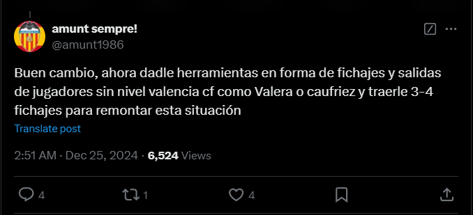 Amunt sempre: «Хорошее изменение, теперь дайте ему возможности в виде трансферов и ухода игроков без уровня для «Валенсии», таких как Валера или Кофрие, и приведите 3-4 новых игрока, чтобы исправить эту ситуацию».