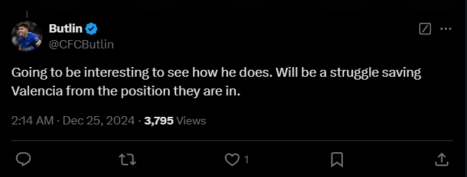 Butlin: «Будет интересно посмотреть, как он справится. Спасти «Валенсию» из того положения, в котором они оказались, будет настоящей борьбой».