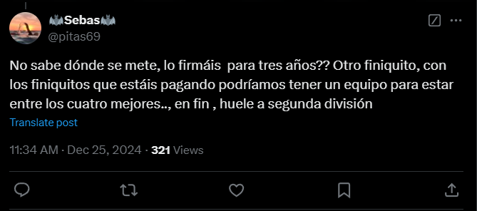 Sebas: «Он не понимает, во что ввязывается. Вы подписываете с ним контракт на три года? Еще одна финансовая выплата, и с теми суммами, которые вы ему платите, у нас могла бы быть команда, которая вошла бы в четверку лучших... Но все это напоминает второй дивизион».