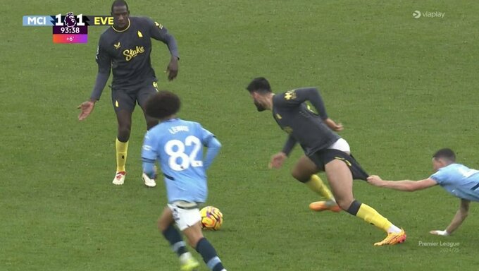 Но на 90+4-й минуте произошел довольно курьезный момент. Звездный игрок «Манчестер Сити», не успевая за соперником, бросился ему в ноги и сорвал шорты. За это нарушение правил арбитр наградил игрока желтой карточкой.