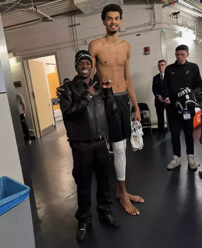 Звездный футболист мадридского «Реала» Винисиус Жуниор опубликовал фотографию с французским баскетболистом «Сан-Антонио» Виктором Вембаньямой.