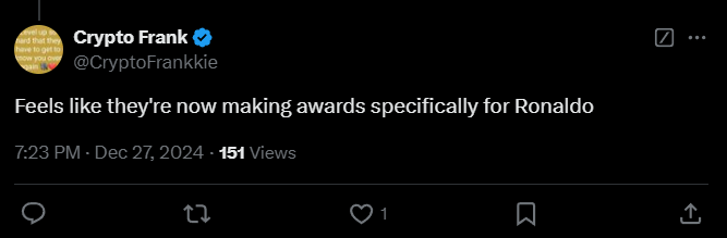 Crypto Frank: «Кажется, теперь они делают награды специально для Роналду».