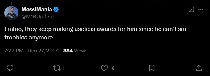 MessiMania: «Лол, они продолжают создавать бессмысленные награды для него, раз он больше не может выигрывать трофеи».