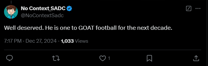 No Context Sadc: «Заслуженно. Он станет одним из величайших футболистов следующего десятилетия».