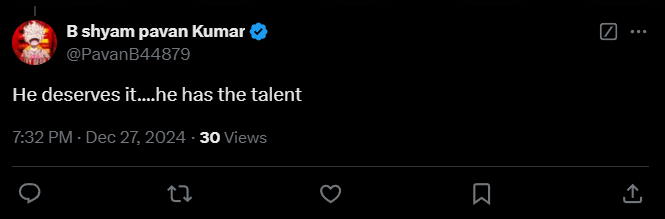 B shyam pavan Kumar: «Он заслуживает этого... у него есть талант».