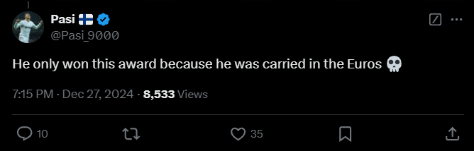Pasi: «Он выиграл эту награду только потому, что его тащили на Евро».