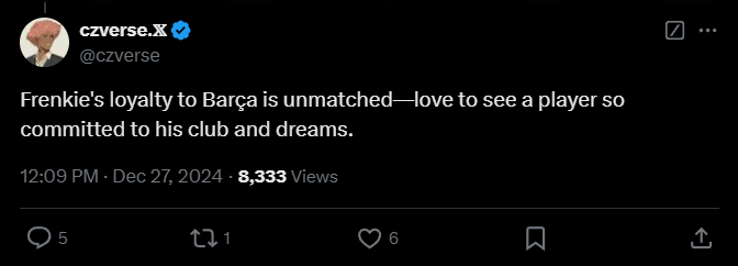 Czverse: «Преданность Френки «Барсе» безгранична – приятно видеть игрока, так сильно приверженного своему клубу и мечтам».