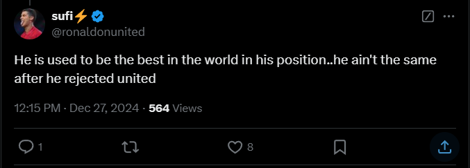 Sufi: «Он привык быть лучшим в мире на своей позиции... после того как он отказался от «Манчестер Юнайтед», он уже не тот».