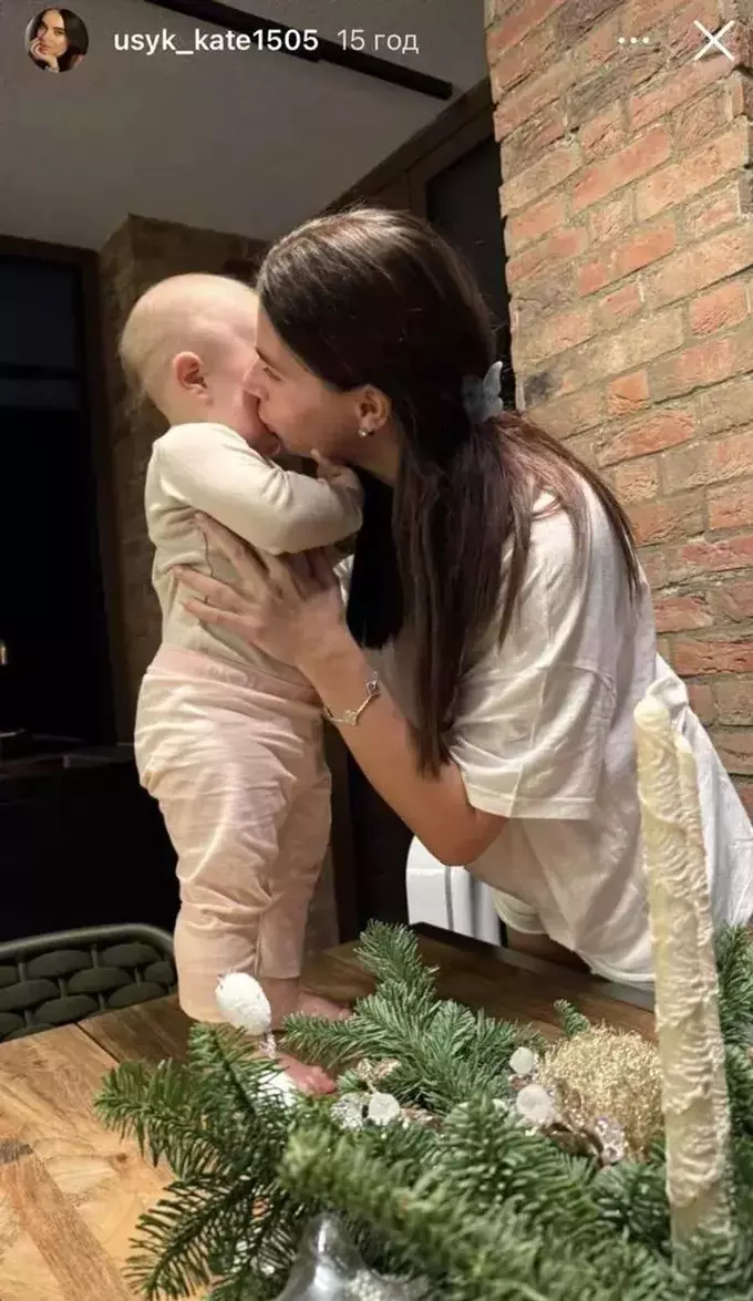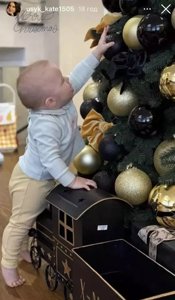 Жена Александра Усика опубликовала новогодние снимки, на которых Марийка заинтересовалась игрушками на ёлке и на которых она обнимает маму.