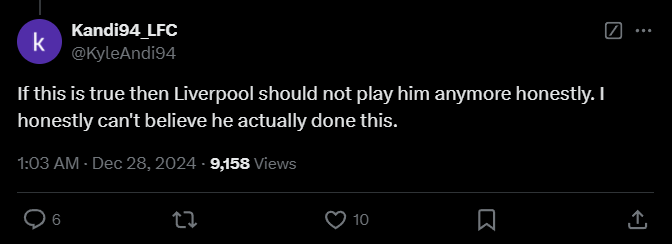 Kandi94_LFC: «Если это правда, то «Ливерпулю» действительно не стоит больше его выпускать на поле. Честно говоря, не могу поверить, что он действительно это сделал».