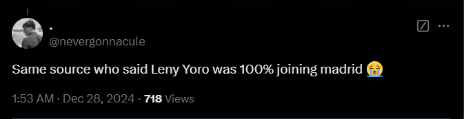 Nevergonnacule: «Тот же источник, который говорил, что Лени Йоро на 100% присоединится к «Реалу».