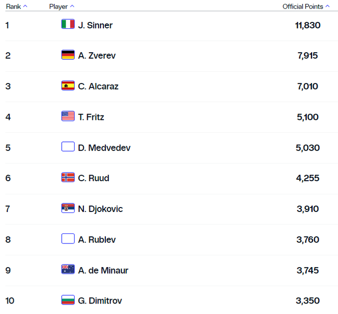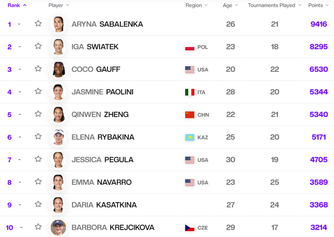 30 декабря в последний раз в 2024 году был обновлены рейтинг WTA и АТР.