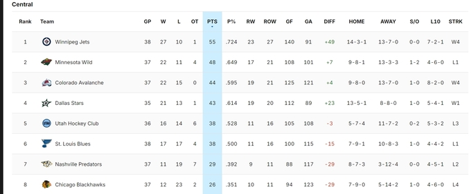 На Западе первым остается Виннипег, который одолел Нэшвилл 3:0 и выиграл четвертый поединок подряд. Предаторз пока третьи худшие в конференции.