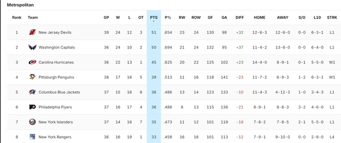 А вот у Рейнджерс продолжается кризис. Команда проиграла семь из последних восьми встреч и идет на последней позиции в Столичном дивизионе.