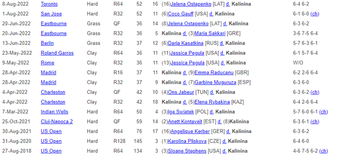 Калинина провела 38 матчей с теннисистками из топ-20. Статистика украинки