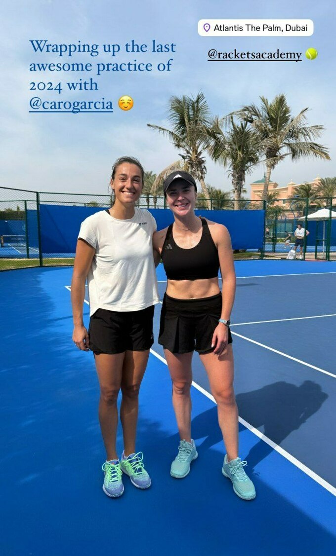 Свитолина позанималась вместе с экс-4-й ракеткой мира из Франции Каролин Гарсией (WTA 48). Украинка опубликовала соответствующее фото в своем Instagram.