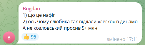 Bogdan: «1) Что это наф#г. 2) Вот почему Слюбика так отдали «легко» в «Динамо». А не Козловский просил 5+ млн».