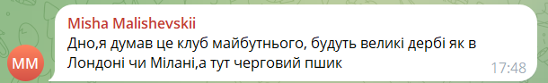 Misha Malishevskii: «Дно, я думал это клуб будущего, будут большие дерби как в Лондоне или Милане, а здесь очередной пшик».
