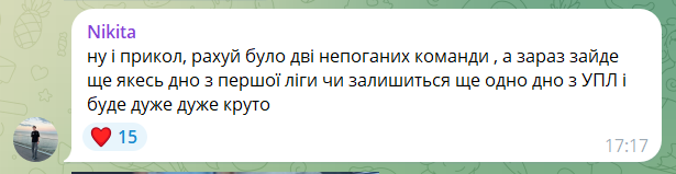 Nikita: «Ну и прикол, считай было две неплохих команды, а сейчас зайдет еще какое-то дно из первой лиги или останется еще одно дно из УПЛ и будет очень очень круто».