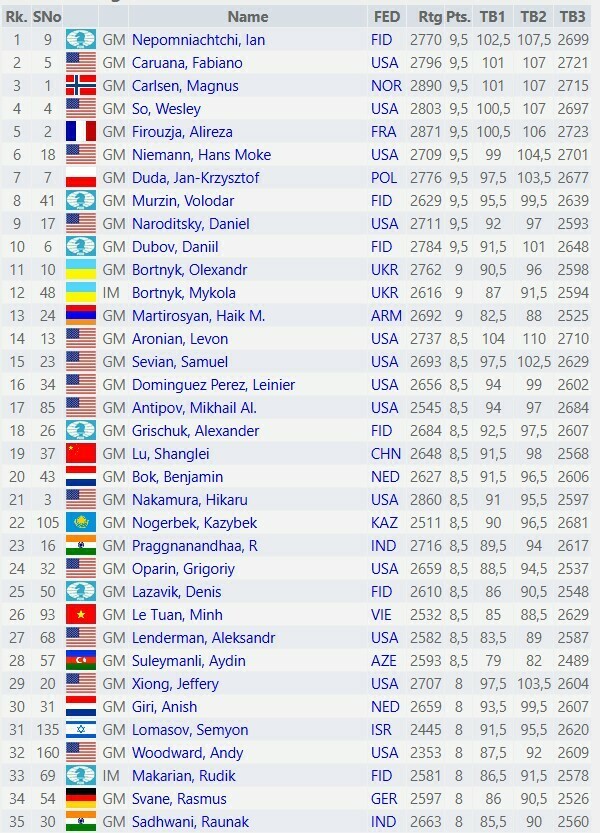 - Ян-Кшиштоф Дуда (Польша) – Фабиано Каруана (США) – 2,5:0,5