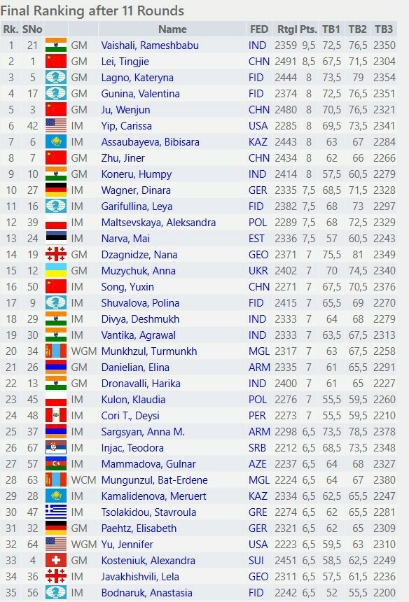 - Вайшали Рамешбабу (Индия) – Цзюй Вэньцзюнь (Китай) – 0,5:2,5