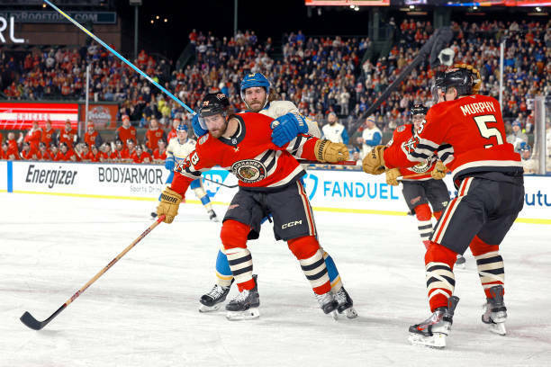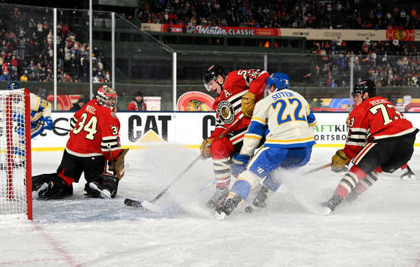 В НХЛ в новогоднюю ночь состоялся уже традиционный матч Винтер Классик – игра под открытым небом. На этот раз на бейсбольном стадионе Ригли Филд в Чикаго сыграли местные Ястребы и Сент-Луис.