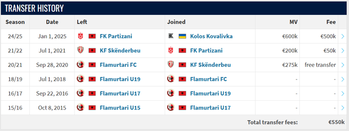 Как сообщает портал Transfermarkt, покупка албанского футболиста обошлась «Колосу» в 500 тысяч евро.